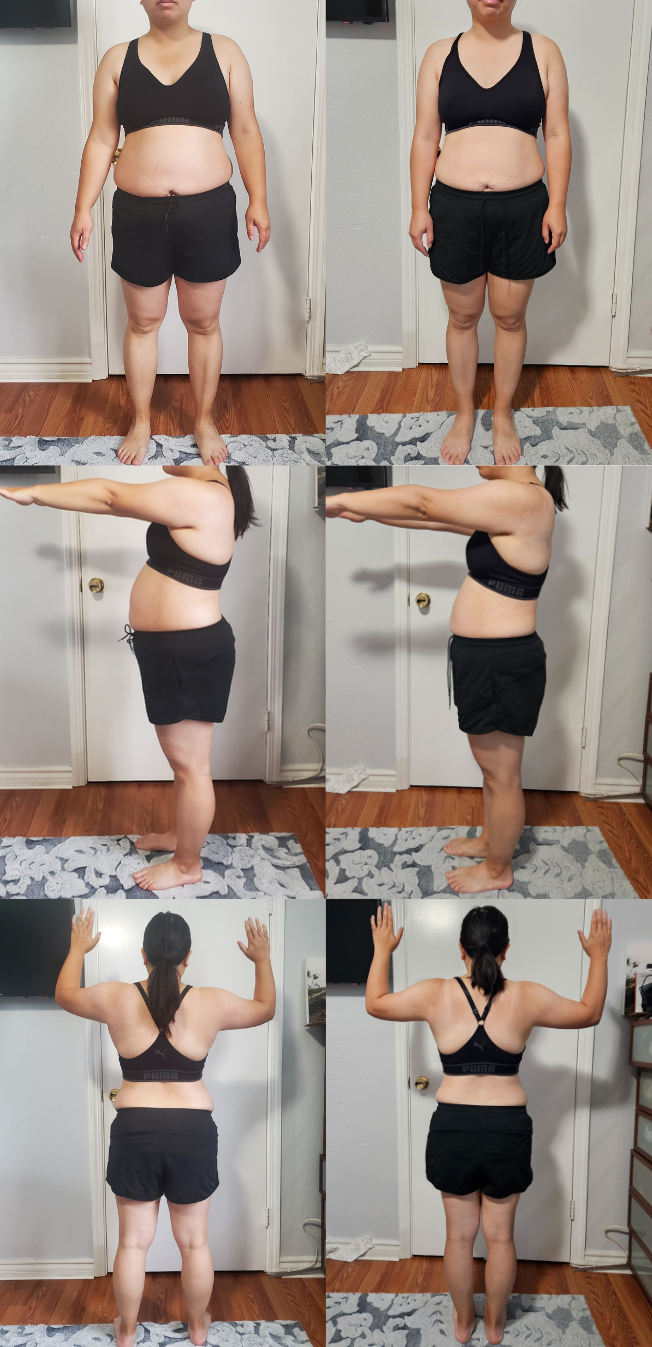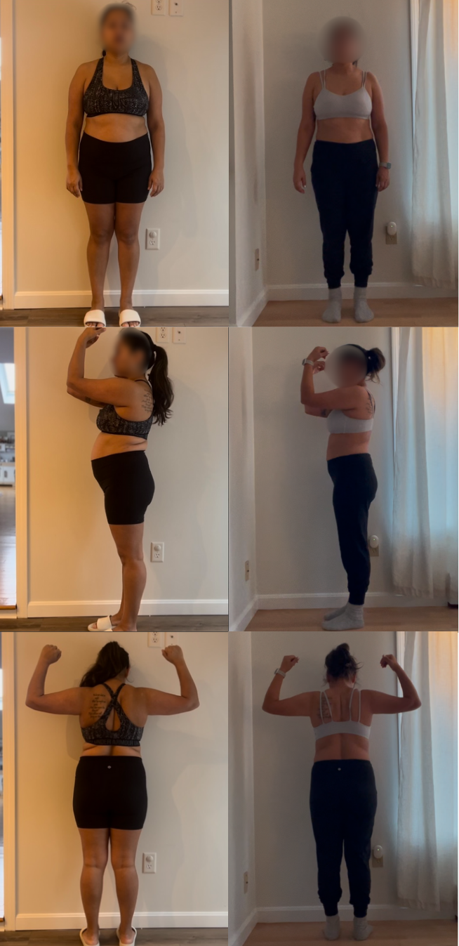 We built a flexible plan—no rigid diets, no unsustainable schedules. Today she’s seeing numbers she hasn’t seen in years, walks into the weight room with confidence, wears shorter tops in photos, inspired her father to start his own journey, and rediscovered running with new PRs.